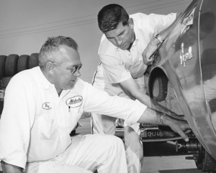 Nichels Engineering was a major force in stock car racing in the 1950s and ‘60s. The “house” racecar builder for Pontiac (1956-63) and Chrysler (1964-70), Nichels won titles in USAC, NASCAR, ARCA and IMCA. Nichels-built Pontiacs dominated stock car racing in 1961 and ‘62. Paul Goldsmith captured the USAC crown both years; Joe Weatherly took the ‘62 NASCAR title. Don White won the 1967 USAC title. In 13 years of NASCAR competition, Nichels Engineering tallied 89 Top 10s, 62 Top 5s, 12 poles and 11 wins, seven at Daytona. Nichels started campaigning midgets when he was 15, then Indy cars, narrowly missing the 1950 AAA national championship with his home-built special with Paul Russo at the wheel. He was the only mechanic to win poles at Indy and Daytona the same year (1957). Just before he died, Nichels was asked why he agreed to race Pontiacs at a time the brand wasn’t known for performance. “I was just dumb enough,” he said, “to think that you could make anything go.”
